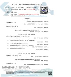鳥取・島根医療情報技術フォーラムより「第19回 鳥取・島根医療情報技術フォーラム」及び情報交換会のお知らせです。
